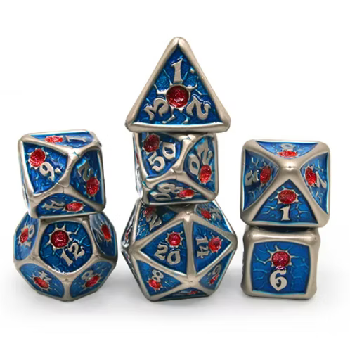Discover the allure of Throat, a 7-piece metal dice set with a blue enamel and red accents. Crafted for dedicated ga...