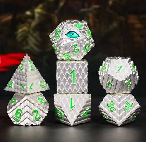 Discover the magic of our Vermithor, a 7-piece dice set that is as formidable as it is beautiful. It features an intricate scaled texture with gold...