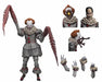 From the acclaimed 2017 horror film IT, drawn from the pages of Stephen King's original novel, NECA presents Pennywise: The Dancing Clown! Based on Bill Skarsgård's portrayal of the nightmare-inducing clown, this 7" scale figure has been painstakingly detailed to be as accurate to Pennywise's ornate costume as possible, and is presented in an Ultimate format with special packaging and LED lights inside one of the heads. This version features 4 head sculpts, 3 of which are all-new heads: "Judith" Painting Head, "Emerging Arms" Head, and Light-Up "Deadlights" Head with LED light inside the mouth. The figure also includes interchangeable articulated insect arms, interchangeable forearms, and 2 pairs of hands. The special window box packaging has a fold down flap in homage to the Dancing Clown scene from the film. Uses button cell batteries, included.